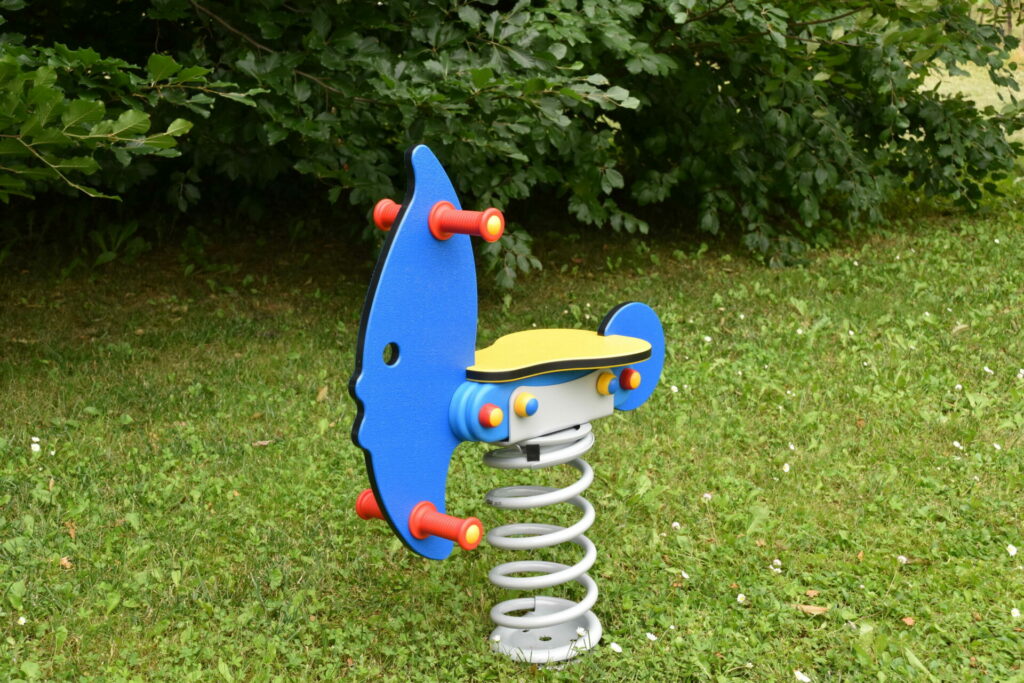 This cute spring rider, with its 100% recyclable polyethylene shape, brings a touch of marine fun to the playground. The sturdy painted carbon steel spring, available in 20 mm or 17 mm versions, offers a smooth and safe rocking motion, perfect for little explorers who dream of swimming to new adventures.